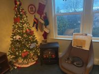 I sat on my front porch with the fire, lit a candle, looked over our beautiful yard, listened to one of our playlists, and simply remembered her. Some tears shed of course, but managed a smile or two over some fond memories, including her very awkward garage bar dancing 🥲
