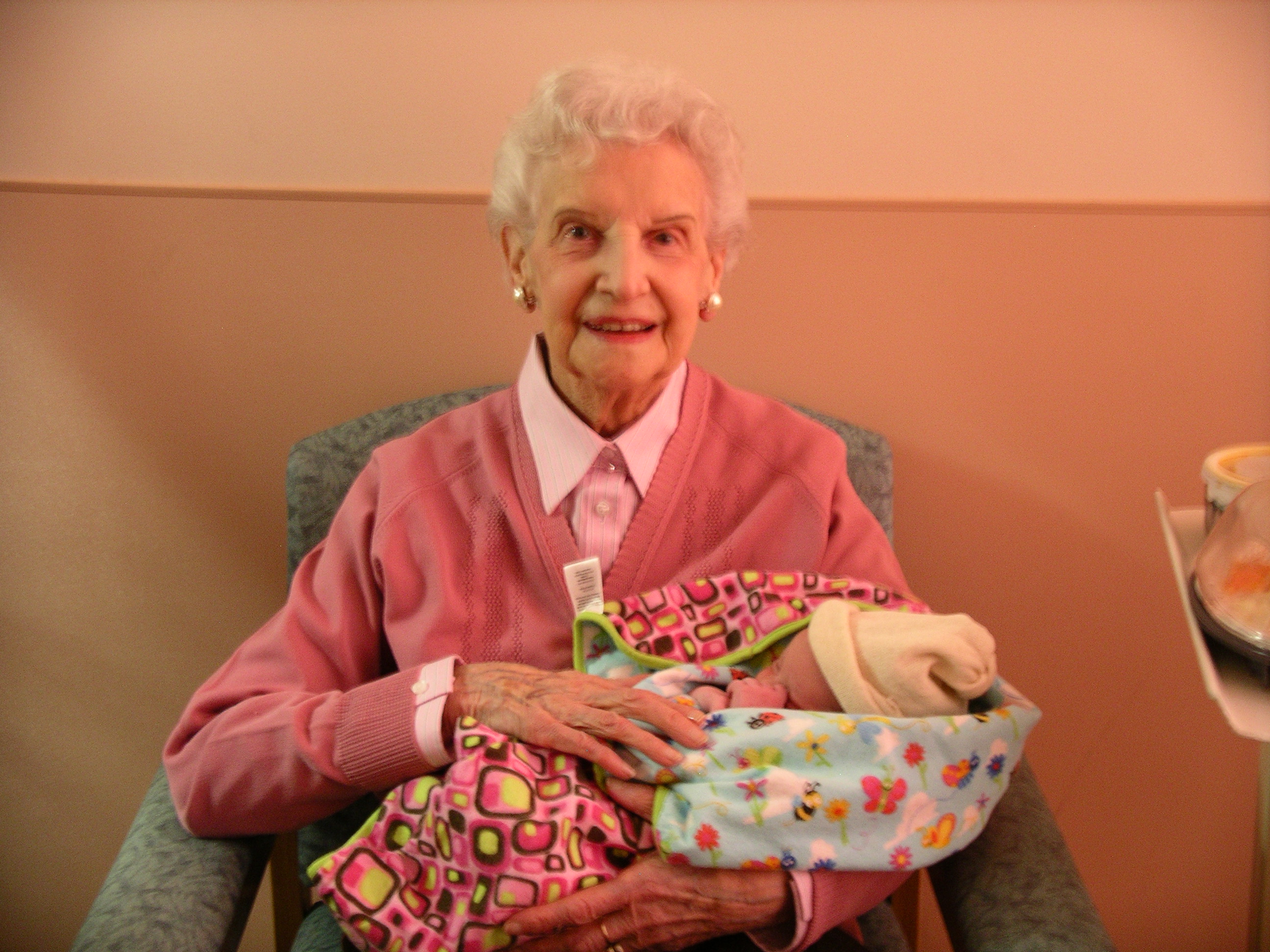 Eva with newborn Great Granddaughter Ava